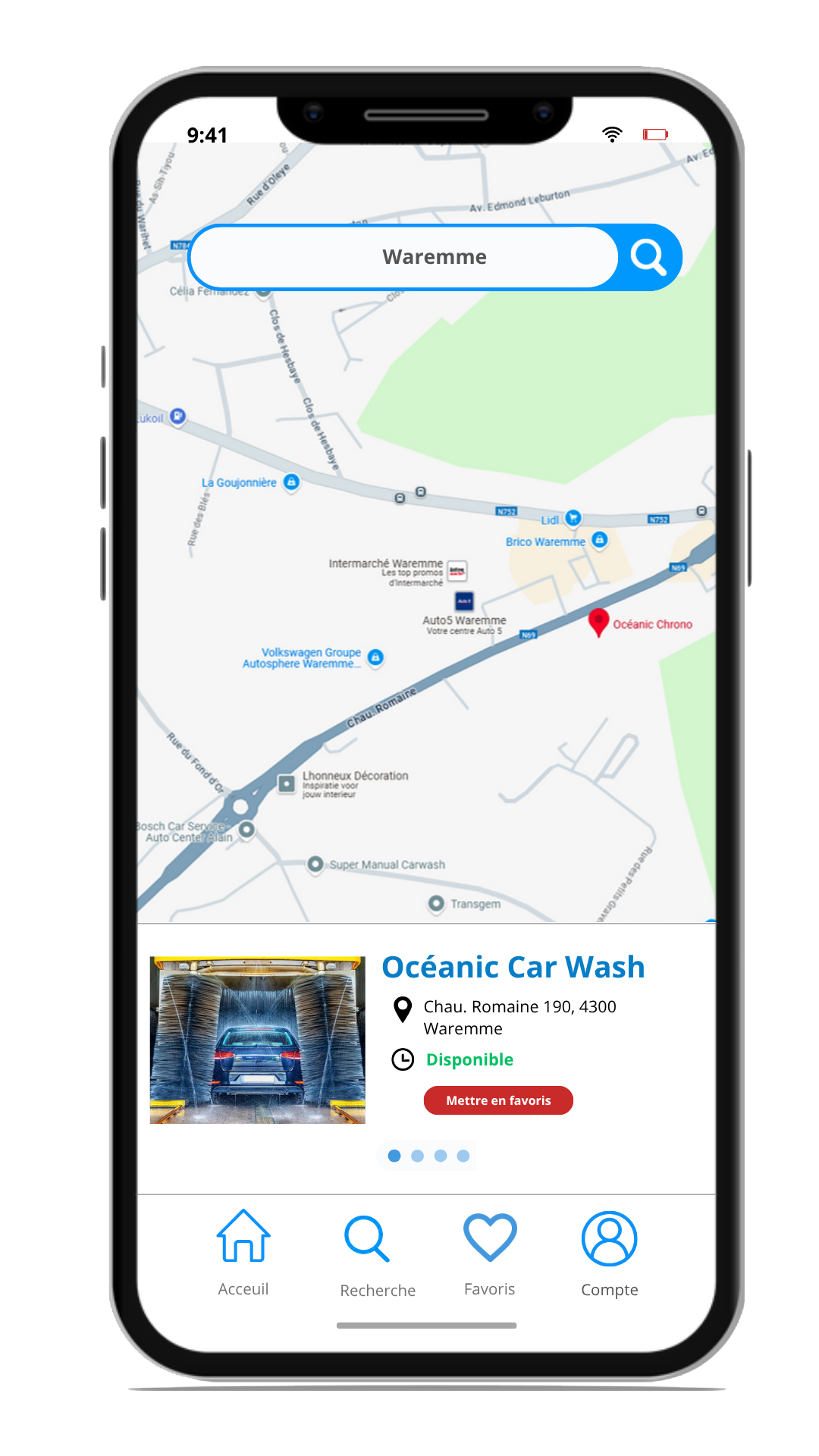 Une carte interactive est disponible dans l’application pour localiser facilement les carwashs partenaires autour de vous.